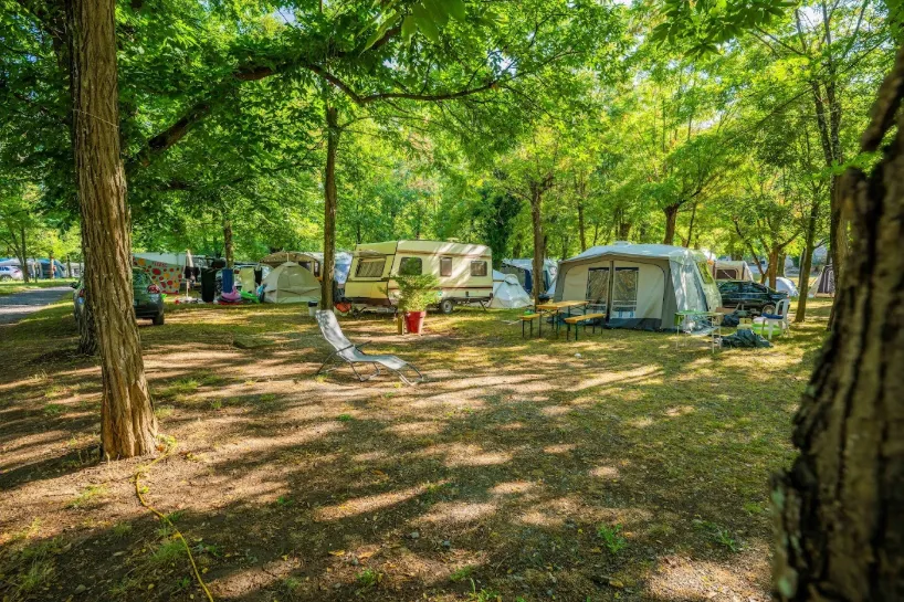 Der Campingplatz liegt in sehr schöner Lage direkt am Fluss. Es gibt seichtere Stellen, die sich für kleinere Kinder zum Spielen gut eignen, aber auch tiefere Stellen zum Schwimmen. Das Wasser ist auch im Sommer erfrischend. Es gibt die Möglichkeit, Tennis, Fußball, Volleyball und Basketball zu spielen, außerdem einen großzügigen Pool, der in Randzeiten nicht überlaufen ist.